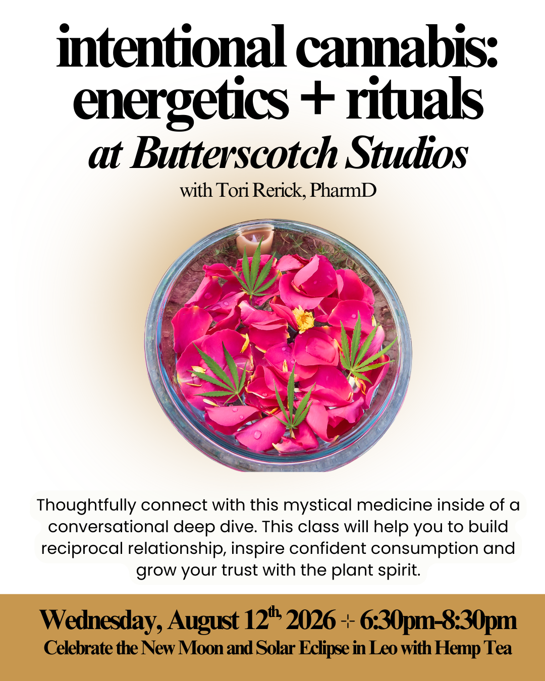This thoughtful talk weaves refreshing perspectives of slow consumption, creative divination, and mystical ritual together as they relate to this mystical medicine. Learn to meet the herb in reverence and increase your integrity with the plant while you sip on some hemp tea.